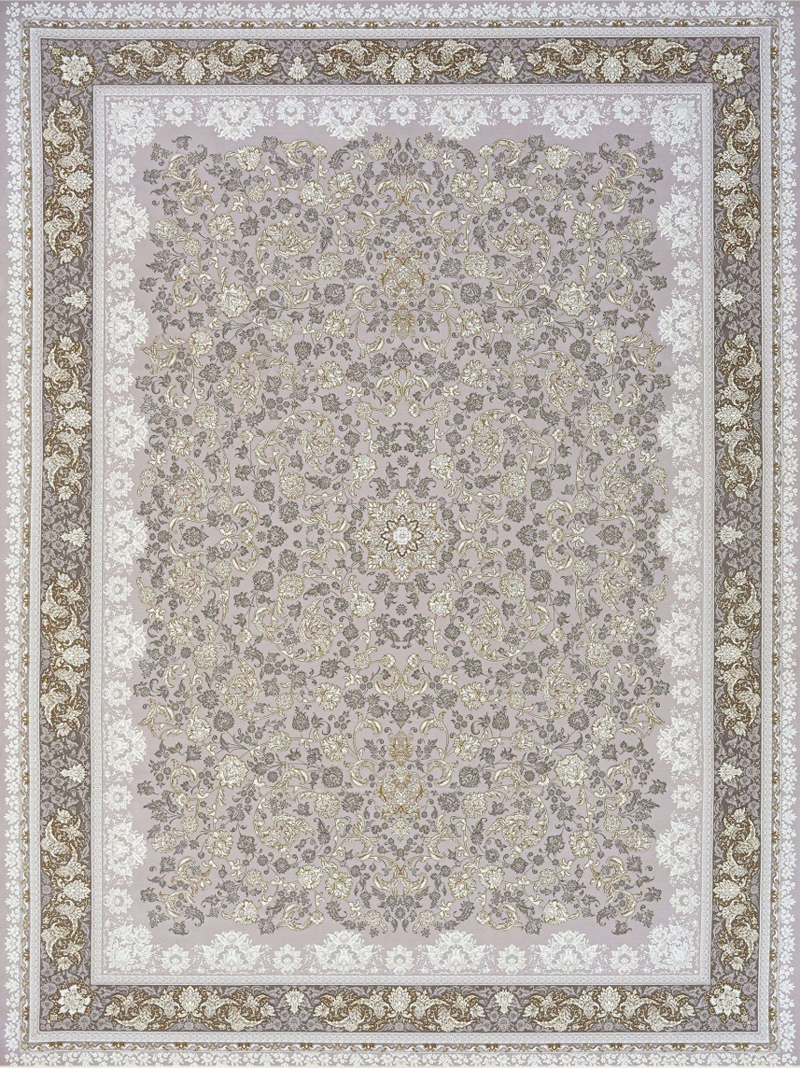 فرش برلیان با کد 12805، 1200 شانه و تراکم 3600، در رنگ نقرهای و از جنس نخ 100% آکریلیک تهیه شده است.