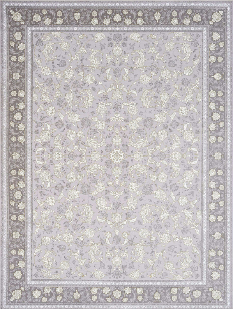 فرش نقرهای کد 12806 از کلکسیون برلیان با 1200 شانه و تراکم 3600، از نخ 100% آکریلیک با کیفیت و دوام بالا تهیه شده است.