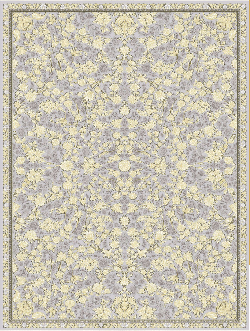 فرش نقره‌ای از کلکسیون برلیان با کد 12887، دارای 1200 شانه و تراکم 3600، از نخ 100% آکریلیک بافته شده است.