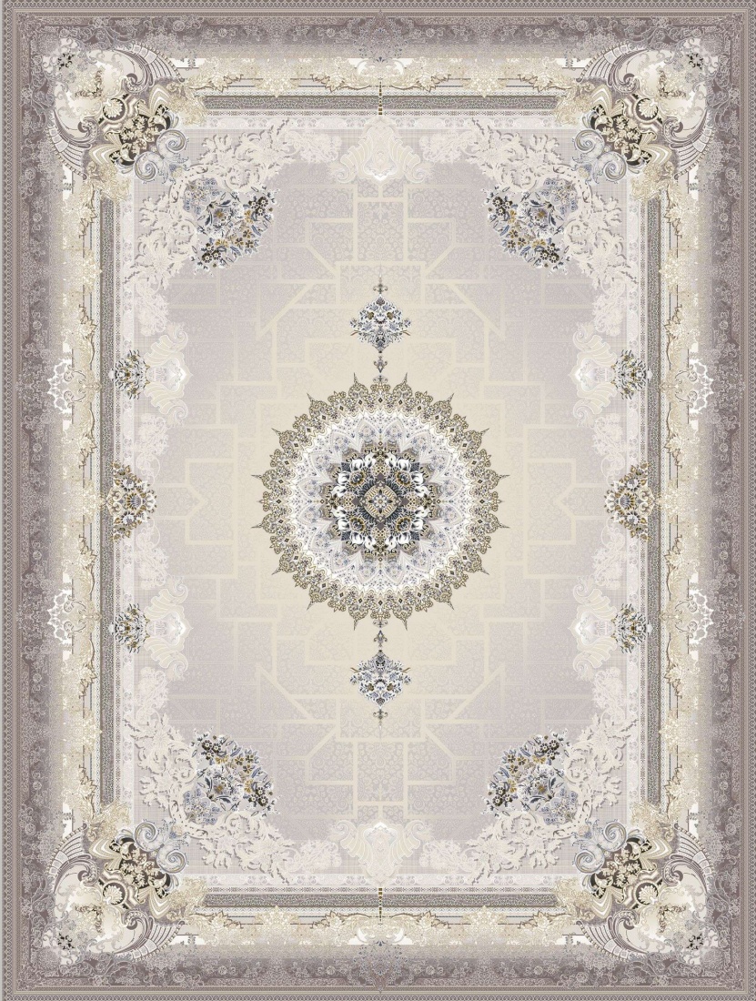 فرش برلیان با کد 80081، در رنگ نقرهای و با 1200 شانه و تراکم 3600، از جنس نخ 100% آکریلیک بافته شده است.