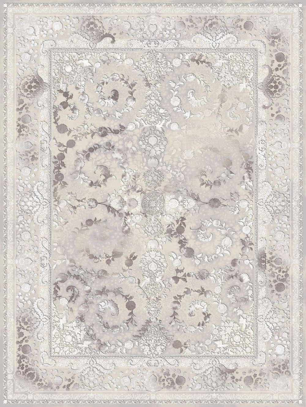 فرش دایان با کد 85046، به رنگ کرم و با شانه 1200 و تراکم 3600، از جنس نخ 100% آکریلیک ساخته شده است.