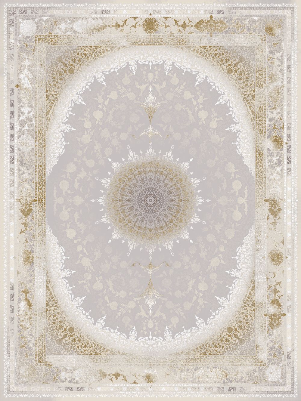 فرش کرم از کلکسیون دایان با کد 85055، با 1200 شانه و تراکم 3600، از جنس نخ 100% آکریلیک تولید شده است.