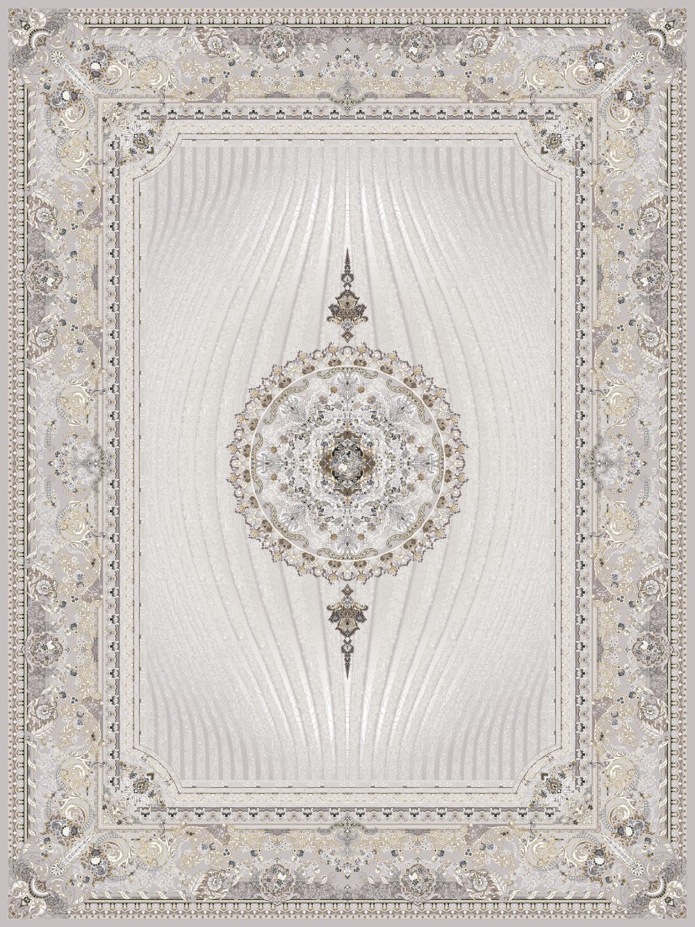 فرش کرم دایان با کد 85079 از کلکسیون دایان، با شانه 1200 و تراکم 3600، از جنس نخ 100% آکریلیک بافته شده است.