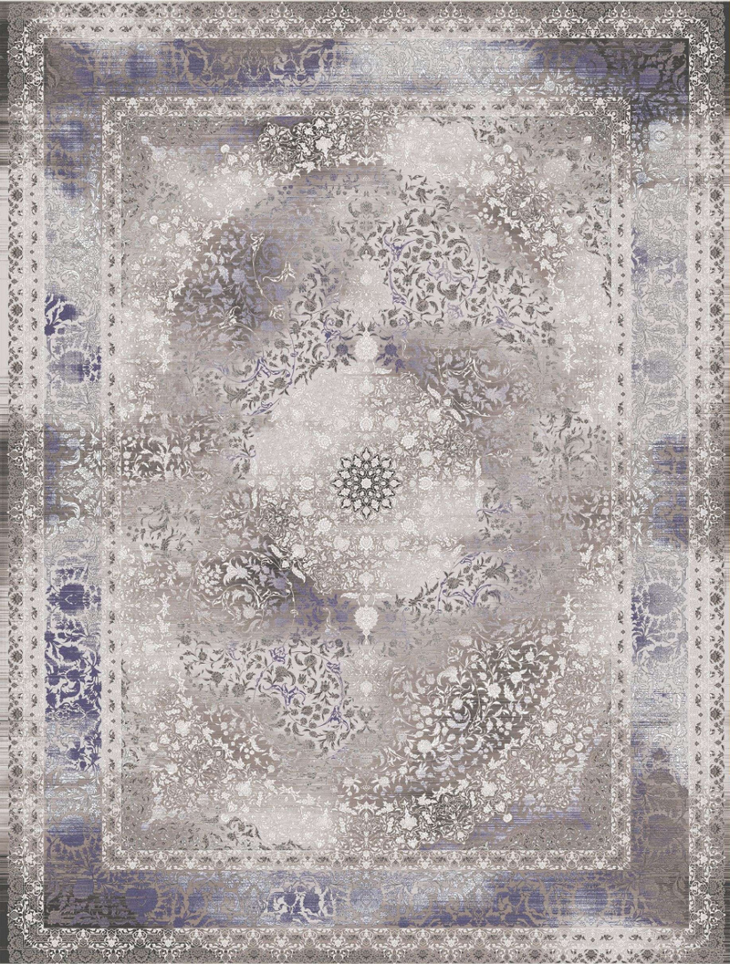 فرش ویوات با کد 32009 در رنگ نقرهای، با 1200 شانه و تراکم 3600، از جنس نخ 100% آکریلیک ساخته شده است.