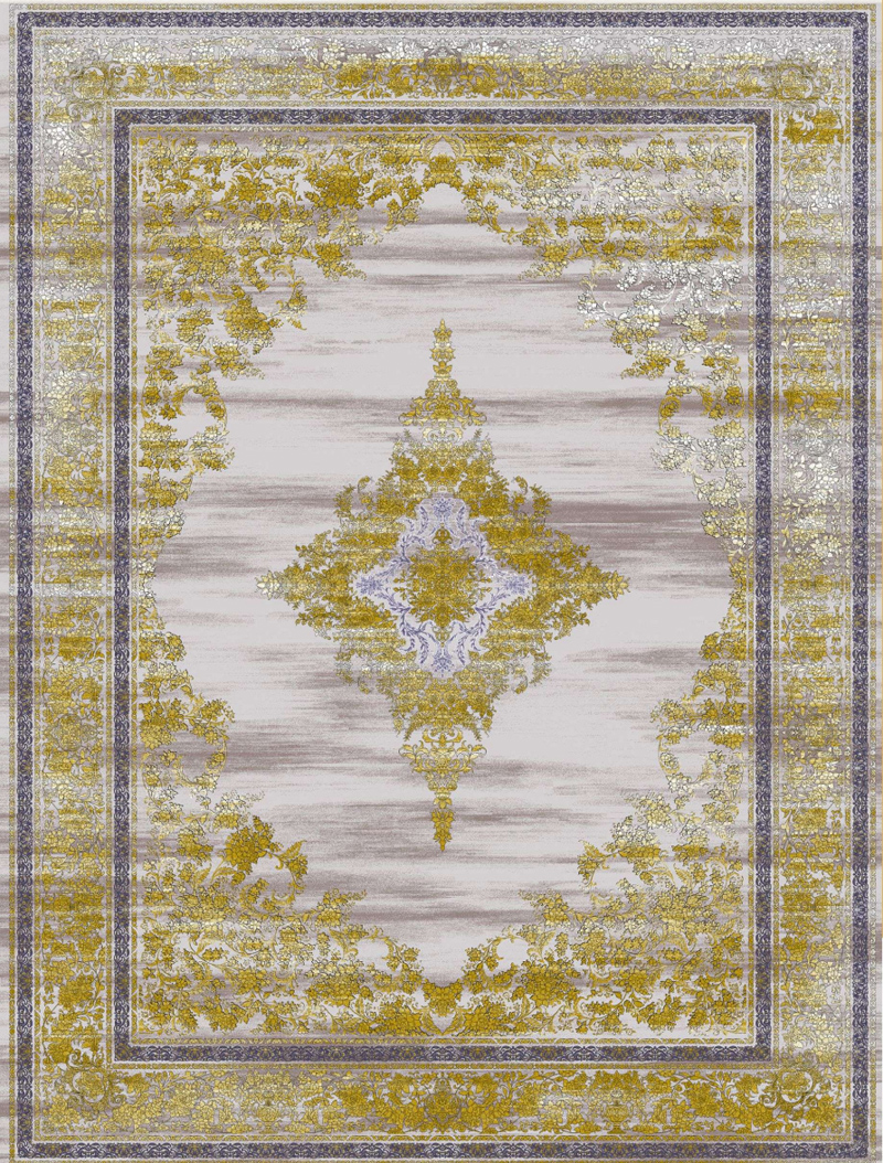 فرش کد 32012 از کلکسیون ویوات با رنگ نقرهای و 1200 شانه و تراکم 3600، از جنس نخ 100% آکریلیک است.