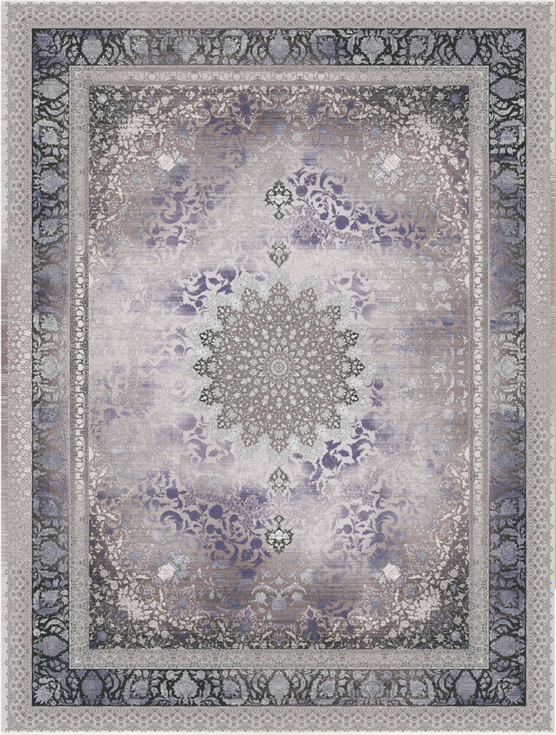 فرش نقرهای از کلکسیون ویوات با کد 32016، دارای 1200 شانه و تراکم 3600، با جنس نخ 100% آکریلیک.