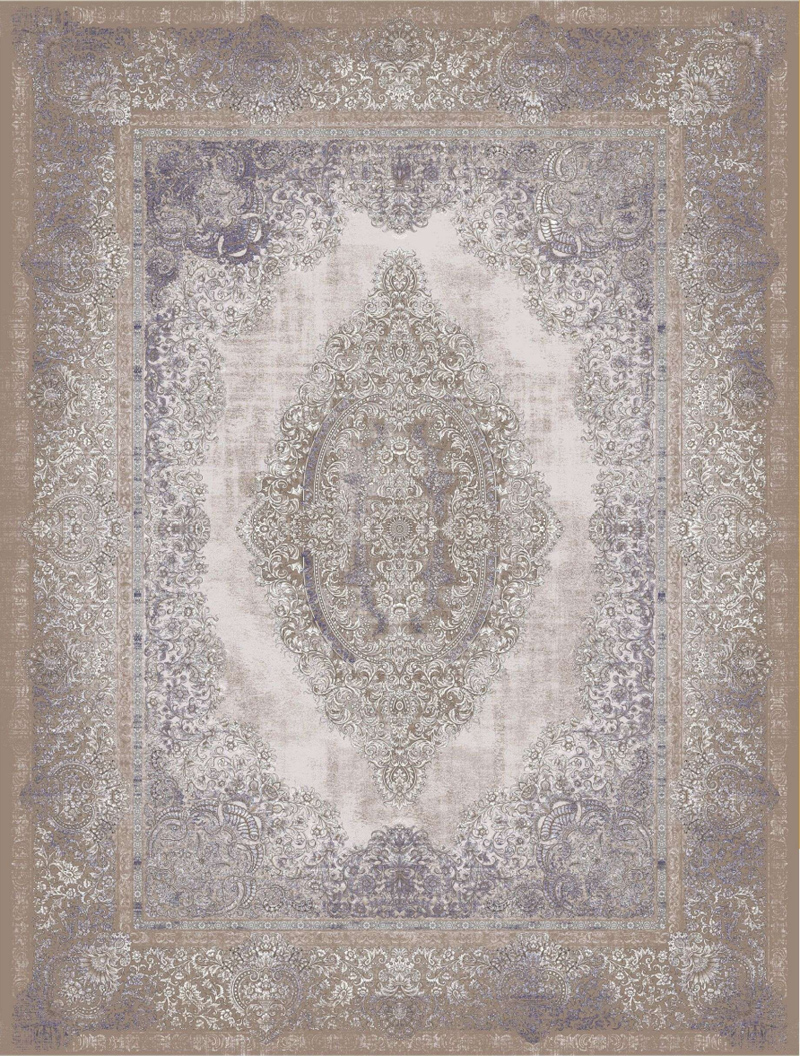 فرش کد 33007 از کلکسیون ویوات با رنگ طوسی، 1200 شانه و تراکم 3600، با نخ 100% آکریلیک بافته شده است.