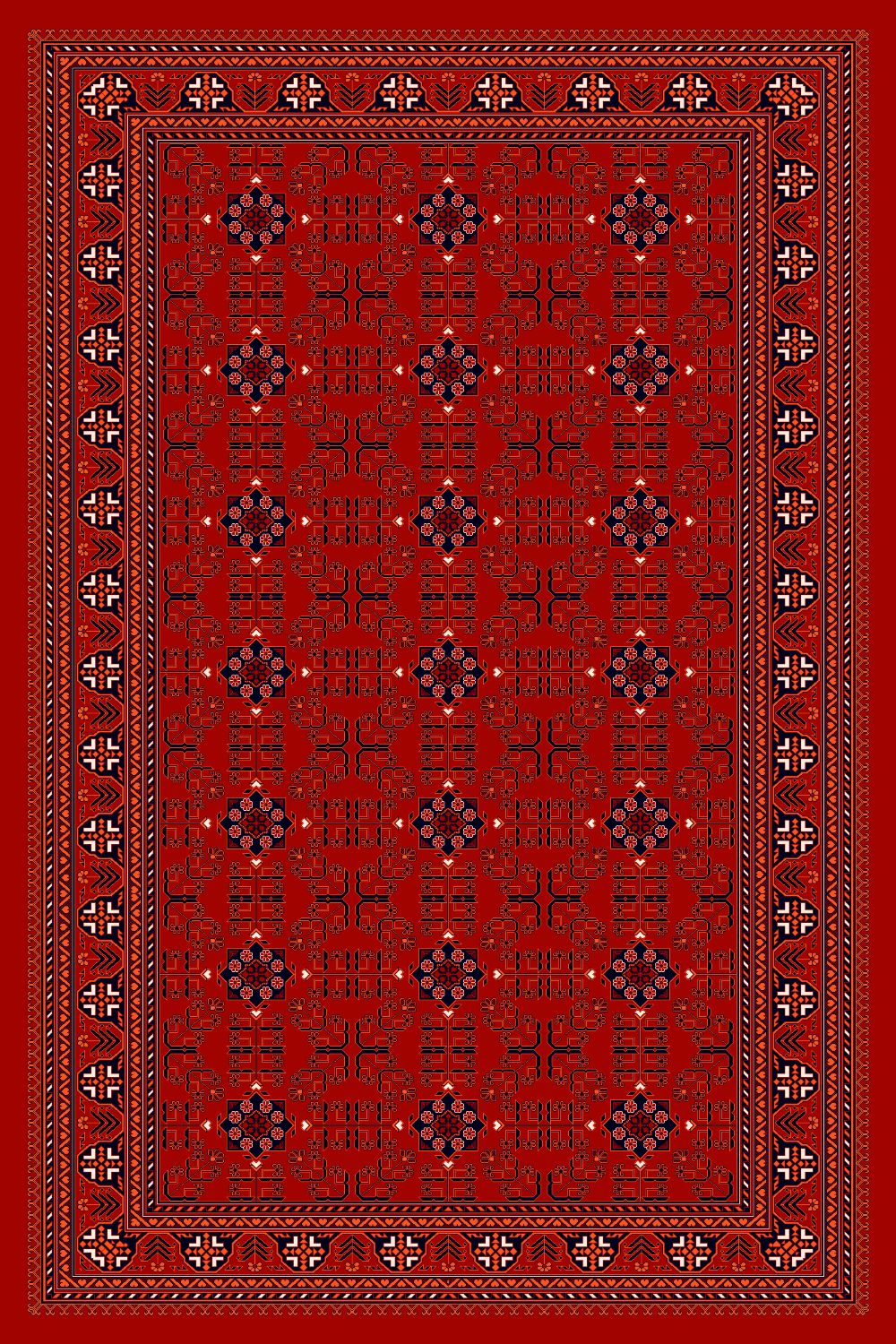 فرش کتیبه از کلکسیون بلوچ با رنگ لاکی، 700 شانه و تراکم 2100، از جنس 100% نخ آکریلیک ساخته شده است.